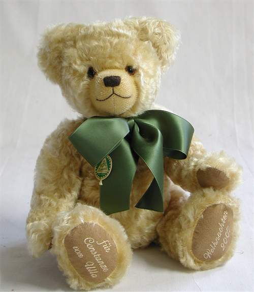 Für Fragen zu diesem Artikel rufen Sie uns am besten an: 09561/8590-0 Ob zu Weihnachten, zum Muttertag, zum Geburtstag, zur Geburt, zur Taufe, zur Hochzeit, zum Jubiläum, zum Schulanfang, zum Einzug in eine neue Wohnung, zur bestandenen Prüfung, zur guten Genesung, als Liebeserklärung oder einfach nur zur Erinnerung Anlässe gibt es genug, Freunden, Familienmitgliedern oder auch sich selbst mit einem Teddybären eine Freude zu machen. Persönlich und individuell wird ein Teddybär aber ganz besonders, wenn er eine individuelle Widmung oder Botschaft auf seiner Fußsohle eingestickt bekommt. Seit 1992 fertigt HERMANN-Spielwaren jetzt schon diese liebenswerten Individualbären. Wir freuen uns deshalb, Ihnen heute unseren neuen HERMANN Individualbär" vorstellen zu dürfen. Sie können beide Fussohlen mit max drei Zeilen besticken. Dabei sollten Sie bitte die maximale Zeichenzahl 1. Zeile: 9 Zeichen, 2. Zeile: 13 Zeichen und 3. Zeile: 9 Zeichen (siehe Beispielbilder) beachten. Wie alle unsere Teddybären wird auch unser HERMANN Individualbär liebevoll in reiner Handarbeit bei HERMANN-Spielwaren in Coburg hergestellt. Er ist 34 cm groß und traditionell mit Holzwolle gefüllt. Er hat eine Brummstimme und wird aus feinstem Mohairplüsch in reiner Handarbeit in Deutschland bei HERMANN-Spielwaren in Coburg gefertigt.