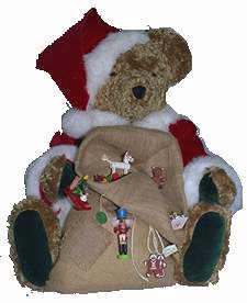 farbric in the today's world. It wears a santa dress and a santa bag with