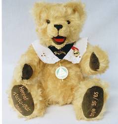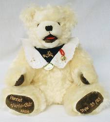 Mit den HERMANN Vario-Bären präsentieren wir in diesem Jahr wieder eine außergwöhnliche Art einer limitierten Teddybären-Edition. Ähnlich wie die 1996 vorgestellten Unikatsbären bewegen sich unsere Vario-Bären im spannenden Grenzbereich zwischen "Einzelstück" und "limitierter Serie". Das Vordringen in solche Grenzbereiche kann immer nur als Experiment gesehen und verstanden werden. Wir haben dieses Jahr wieder ein solches Experiment gewagt. Die Idee der Vario-Bären war für uns eine Herausfordung an unsere designerische Kreativität, der wir uns stellen wollten. Das Ergebnis ist eine limitierte "Vario-Edition" von 65 kleinen Bären-Kindern, die alle auf ein- und derselben Schnittvorlage gründen, dennoch aber in sich so variiert sind, daß kein Bär dem anderen gleicht und jeder einzelne sich als unikatives Einzelstück präsentiert.