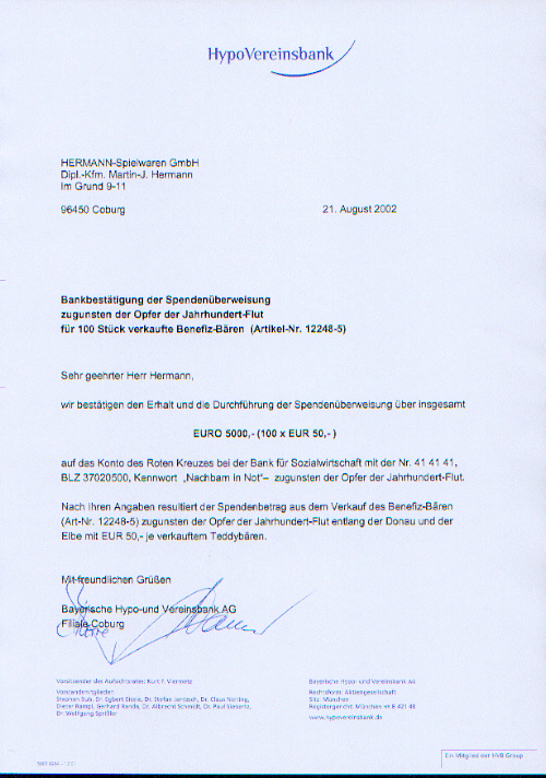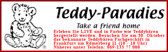 Sammler HERMANN Coburg Neuheiten Katalog 2001 ist jetzt in gedruckter Version erschienen, mit vielen zusätzlichen Hintergrundstories zu unseren Bären. Er kann gegen DM 10,- Schutzgebühr (Scheck, Briefmarken, Schein) bei uns angefordert werden.