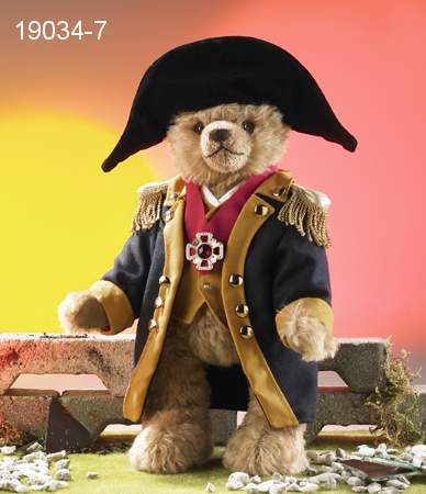 ! HERMANN-Coburg's Sonderbär "Einzug der Teddybären bei Teddybär Total" HERMANN-Coburg wird für Teddybär Total 2001 am 28/29. April 2001 in Hennef den diesjährigen Sonderbären fertigen. Eine entsprechende Vereinbarung wurde mit dem Verantstalter getroffen. Größe 29 cm = 11,5 inch, gespitzter Mohairplüsch mit Holzwollfüllung , mit Musikwerk: Triumphmarsch aus Giuseppe Verdi "Aida", Teddybär Total-Logo um den Hals, befestigt an einem roten Gürtchen mit Glöckchen, Quitsche ins Logo eingearbeitet, mit Wanderstab, mit geknotetem Tuch am Stab (für "Wegzehrung"), mit Reisetasche mit Stickerei "Der Bär mit dem laufenden Hund", mit gestickten und traditionell braun gespritzten Krallen an den Beinen, braune Sicherheitsaugen, mit Zertifikat mit handschriftlich eingetragener Nr. der Limitierung, mit grünem HERMANN-Coburg Logo, mit HERMANN-Coburg Halsmarke, Stickerei auf beiden Fußsohlen inkl. der laufenden Nr. der Limitierung. Limitierung 300 Stück weltweit.