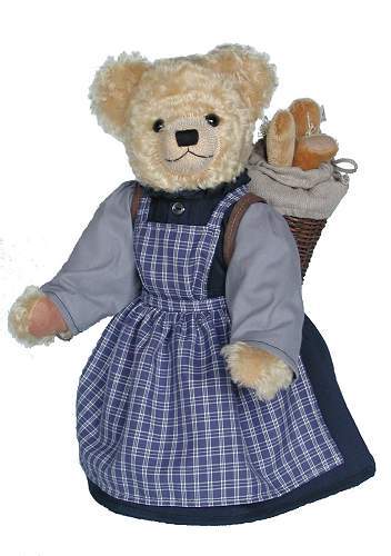 | Die Heimarbeiterin - the "Homeworker Woman" Limited Edition 88 Stück (pieces) - world-wide Mohairplüsch, Holzwollfüllung, Brummstimme, mit einem hand-geflochtenen Huckekorb