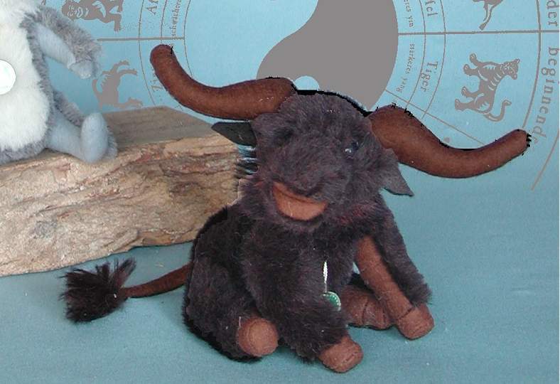 Alpaca natural plush, polyester/steel-granulat filling, Limited Edition 100 Stück (pieces) - world-wideje Modell (each model) nummeriert auf einer goldfarbenen Metallplatte, die in den linken Oberschenkel eingenietet ist - numbered by a little golden colored metal plate, riveted into the left thigh. 21002-1 18 cm 7 inches |