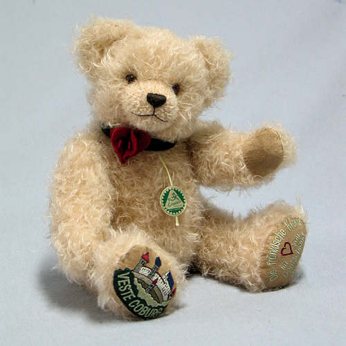 Der "Veste Coburg Bär" wurde nach alten Schnittvorlagen aus den 1930er Jahren gestaltet, die noch aus der Zeit in Sonneberg stammen. Der 34 cm große Bär ist aus Mohairplüsch gefertigt und wird in Coburg in reiner Handarbeit hergestellt. Er ist mit Holzwolle gestopft und hat eine Bären-Brummstimme. Um seine Besonderheit zu gewährleisten, ist die Herstellung des "Veste Coburg Bären" auf nur 100 Stück limitiert. Auf seiner Fußsohle ist die Silhouette der "Veste Coburg" eingestickt. Am Hals trägt er ein kleines rotes Filzherz als Zeichen für die deutsche Wiedervereinigung, die die "Veste Coburg" wieder in die Mitte der Bundesrepublik Deutschland gerückt hat. Das Herz ist aber auch Symbol für eine "Stadt mit Herz", die den Hermann Teddybären aus Sonneberg nach der Teilung Deutschlands ein neues Zuhause schenkte.