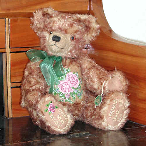 | tipped Mohairplüsch Holzwollfüllung Musikstimme "Amazing Grace" extrem aufwändige Stickerei auf dem Körper des Bären im Gobelin Stil 37 cm Limitierung 500 Stück European Edition